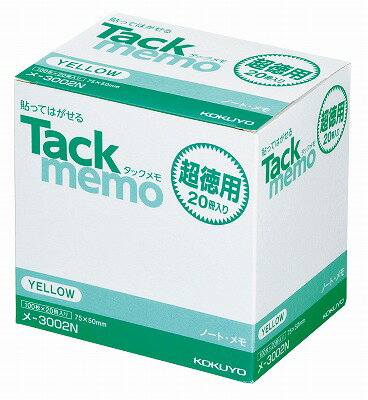 【コクヨ】タックメモ 超徳用 ノートタイプ タテ 100枚X20冊 黄 メ-3002N 業者様歓迎