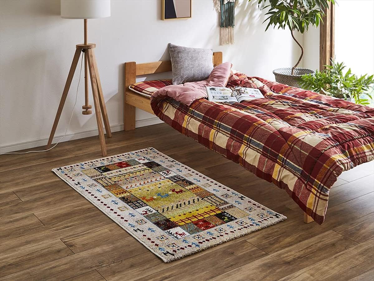 イケヒコ ウィルトン織りラグ イビサ トルコ製 ギャッベ柄 アイボリー 80×140cm