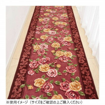 (同梱不可) エレガントローズ 廊下敷きマット(抗菌防臭 吸水速乾) 日本製 65×540cm エンジ 高級感のあるローズ柄のマット