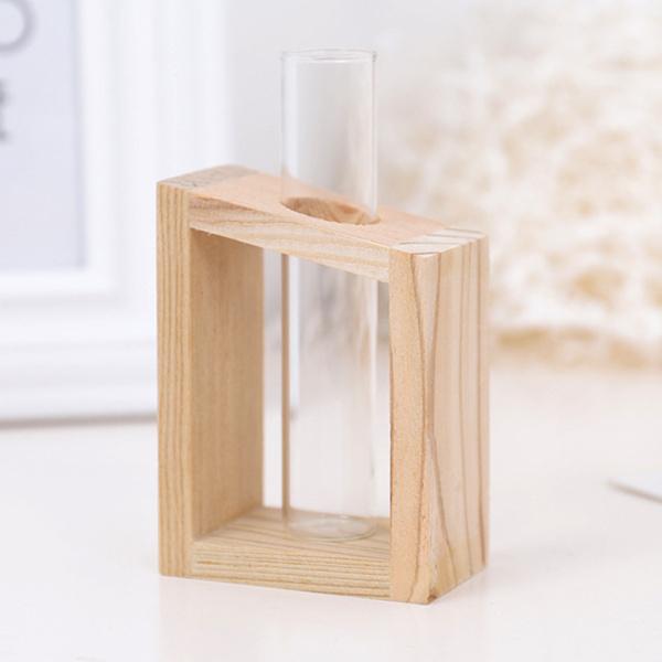 水耕植物の花瓶フラワーポット試験管花瓶木製フレーム6.5x4x9CM