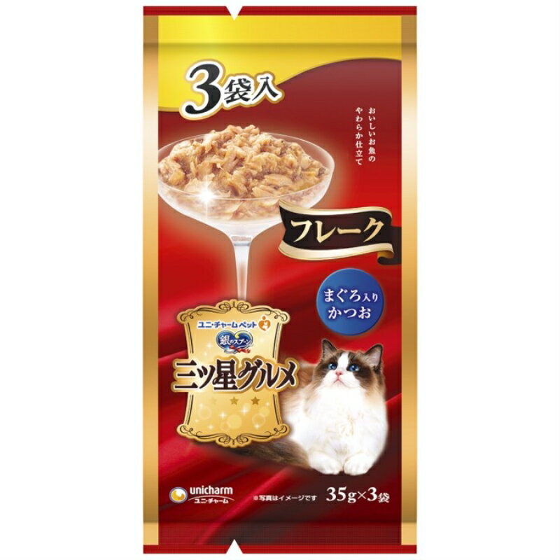 【同梱不可】【5個セット】ユニ・チャーム 銀のスプーン三ツ星グルメパウチフレークまぐろ入りかつお35g×3袋