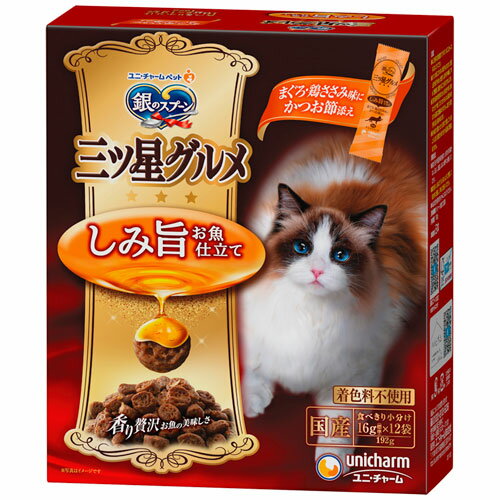 ユニ・チャーム 銀のスプーン 三ツ星グルメ しみ旨お魚仕立て まぐろ・鶏ささみ味にかつお節添え 192g