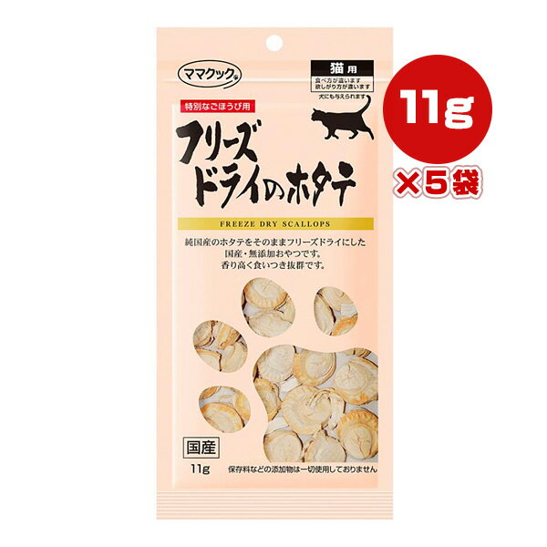 フリーズドライのホタテ 猫用 11g×5袋 ママクック ▼g ペット フード 猫 キャット おやつ 無添加 国産