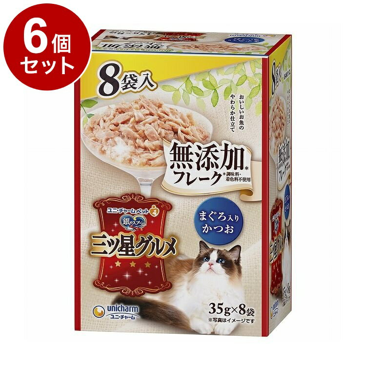 【6個セット】 ユニチャーム 銀のスプーン三ツ星グルメパウチ フレーク無添加 まぐろ入りかつお 35g×8袋【送料無料】