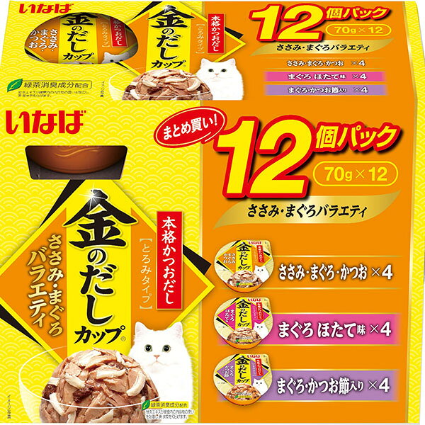 【3個セット】 いなば 金のだしカップ ささみ・まぐろバラエティパック 70g×12P いなばペットフード