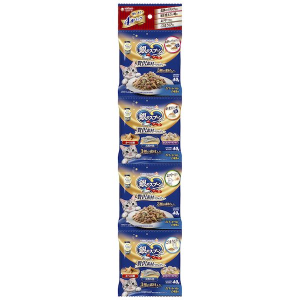ユニ・チャーム 4520699621523 銀のスプーン 贅沢素材バラエティ まぐろ・かつお・白身魚味 40g×4個