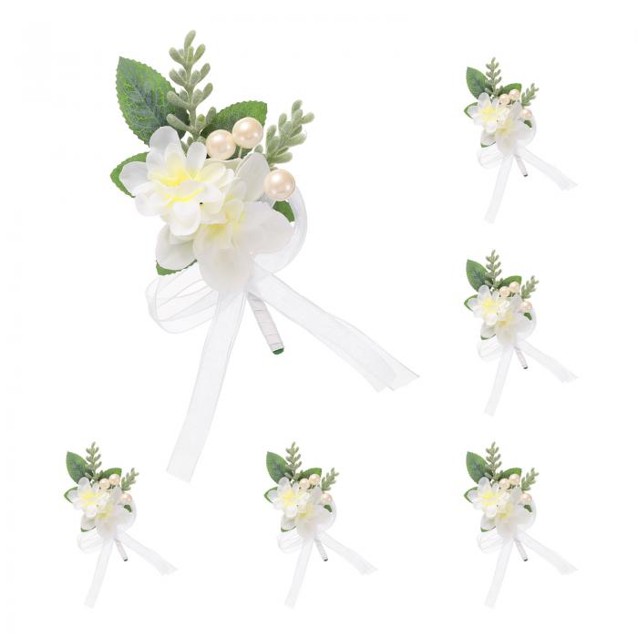 男性用ブートニア6個セット ブートニアピン付きポケットコサージュ人工花 花婿花嫁結婚式記念日フォーマルパーティー