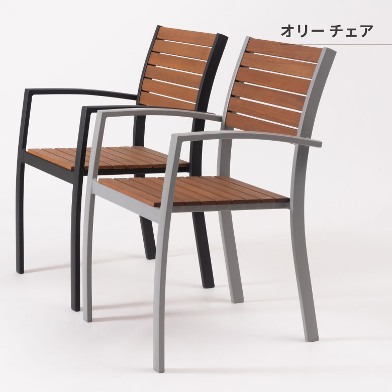 オリー チェア チェア イス 椅子 天然木 ガーデン 庭 屋外 テラス アルミ かわいい おしゃれ ブラック 黒