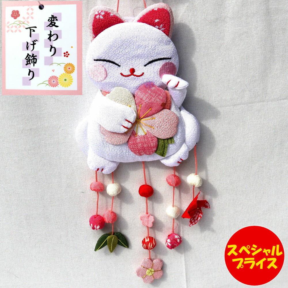 招き猫 開運 下げ飾り 桜 さくら ちりめん 猫 ちりめん細工 変わり下げ飾り ねこ■