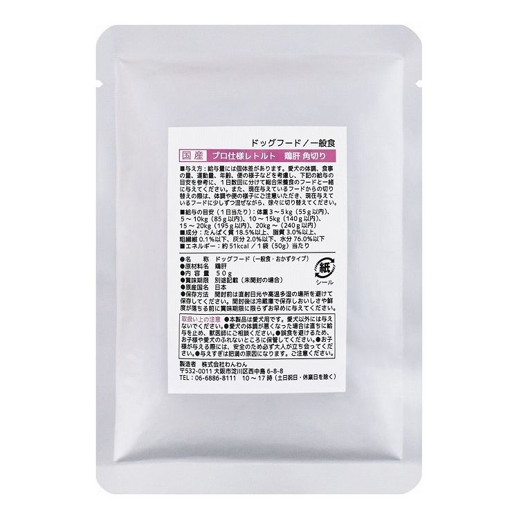 わんわん プロ仕様レトルト 鶏肝角切り 50g