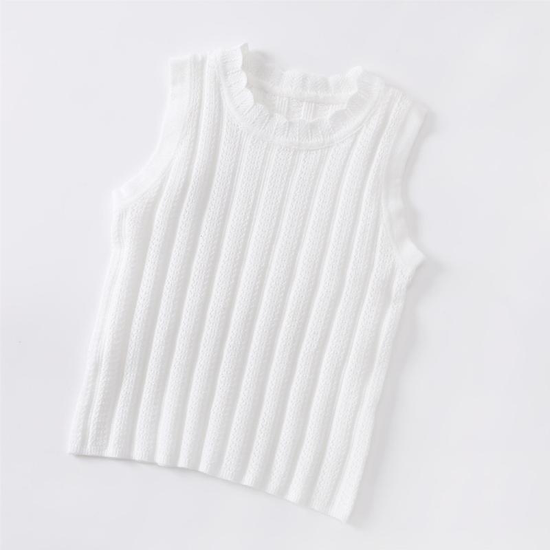 タンクトップ ガールズ 白 ノースリーブ キャミソール ニット 薄手 再生繊維 接触冷感 伸縮性 シンプル かわいい レース 丸首 春夏