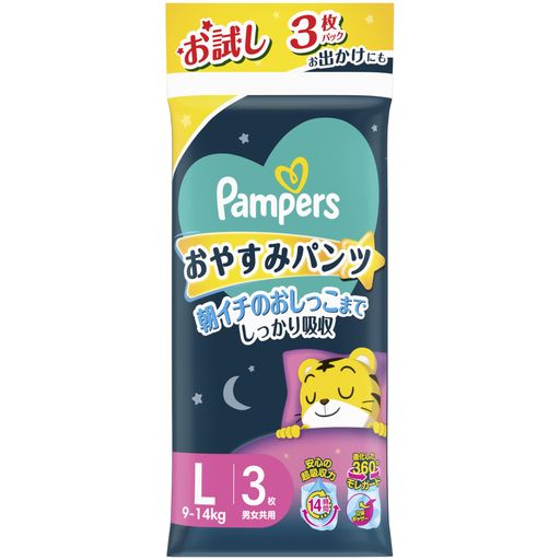 【パンツLサイズ】パンパースオムツ夜用おやすみパンツ(9~14kg)3枚トライアルパック