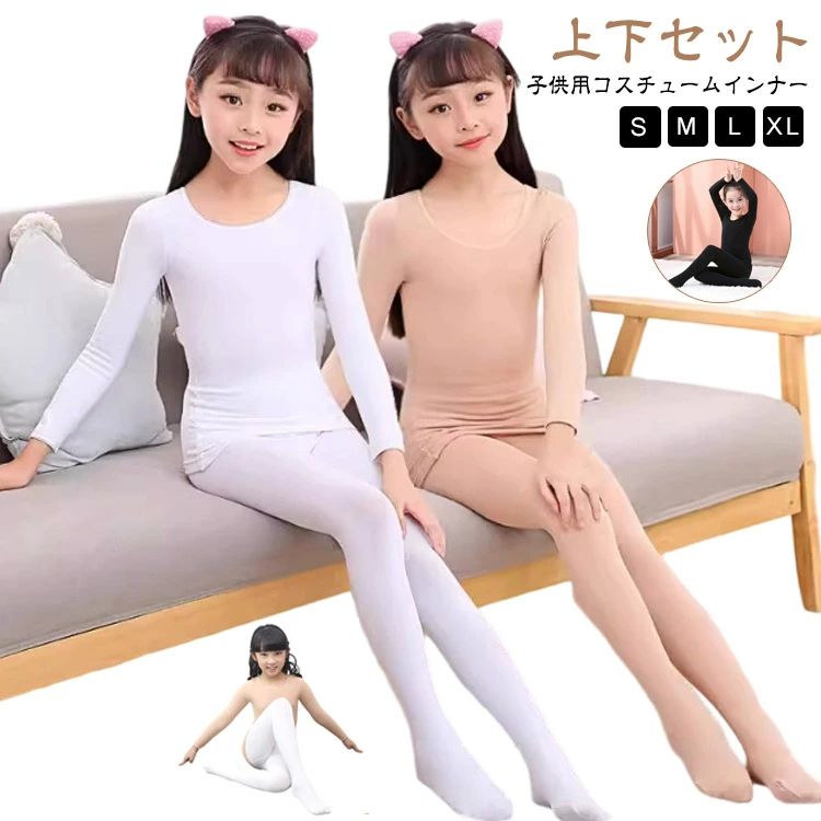 セット 長袖 肌色 合唱団 バレエ コスチューム 黒 薄手 キッズ 演出服 女の子 白 コスチューム ダンス衣装 上下セット レギンス