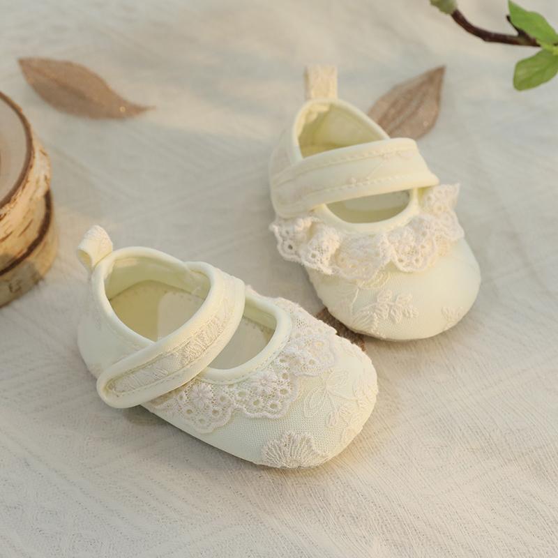 ベビー シューズ ソフトソール 春秋 0歳 1歳 女の子 赤ちゃん レース ガーリー シンプル おしゃれ スリッポン 軽量