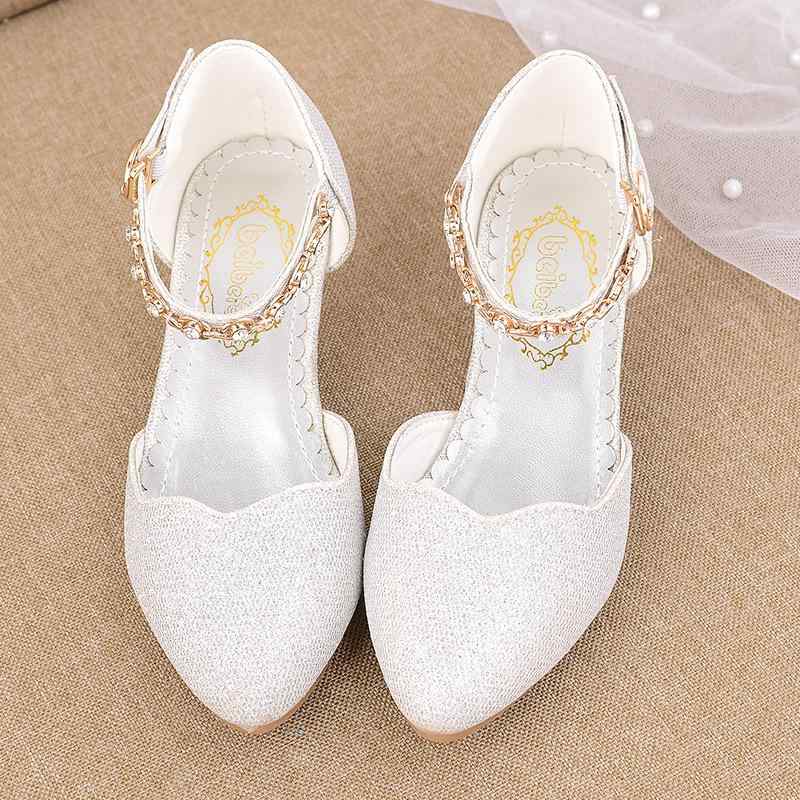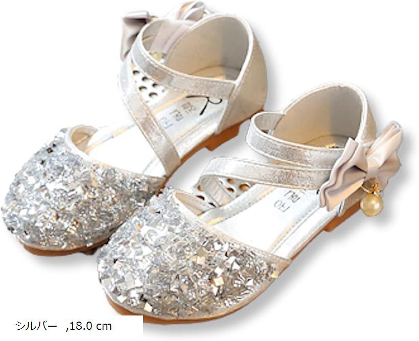靴 キッズ 銀色 クリスタル シューズ 女の子 子供 プリンセス風 ダンス 発表会 人工皮革 亮片 ゴム底 かわいい