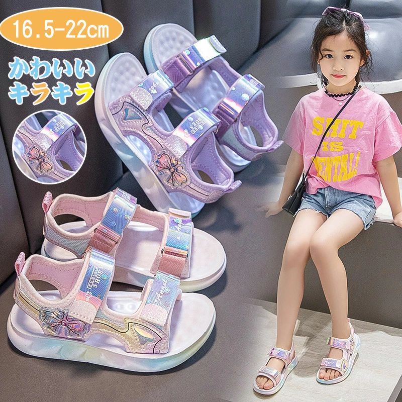 【送料無料】ベビー かわいい 子供靴 シューズかわいい スニーカー スポーツサンダル ジュニア キラキラグラデーションが 女の子 キッズ