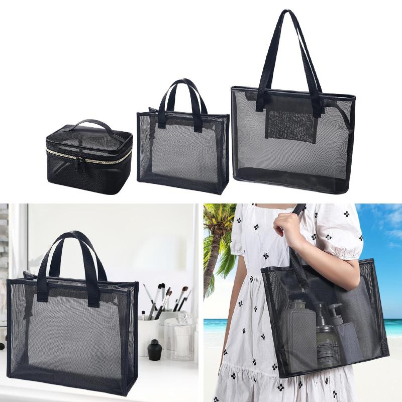 メッシュメイクアップコスメティックバッグ持ち運びポータブル多機能旅行トイレタリーバッグメッシュポーチ同僚寮アクセサリージム