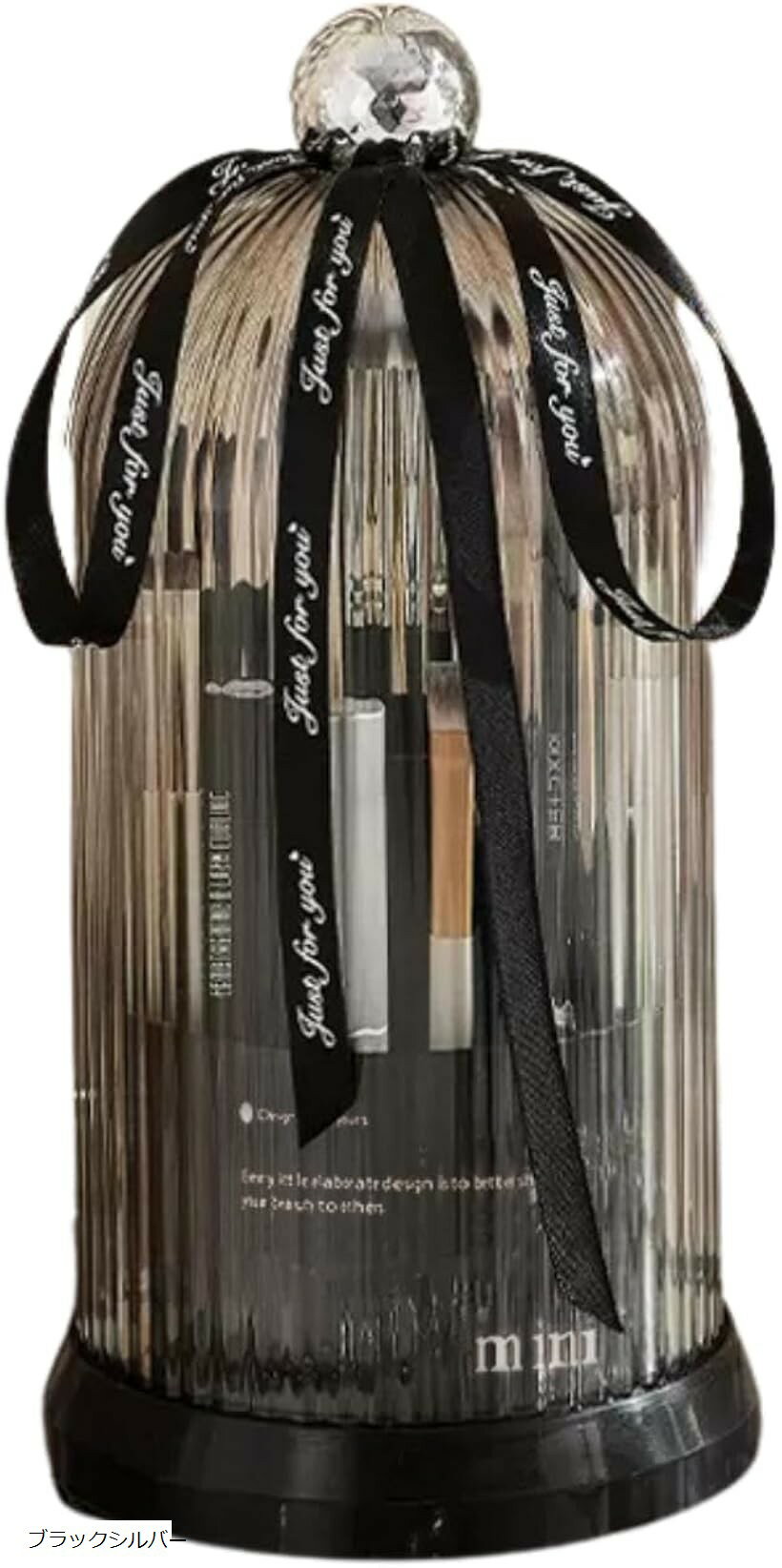 メイクブラシケース メイクブラシスタンド 収納ボックス 自立 蓋付き 仕切り 360°回転 大容量 可愛い (ブラックシルバー)
