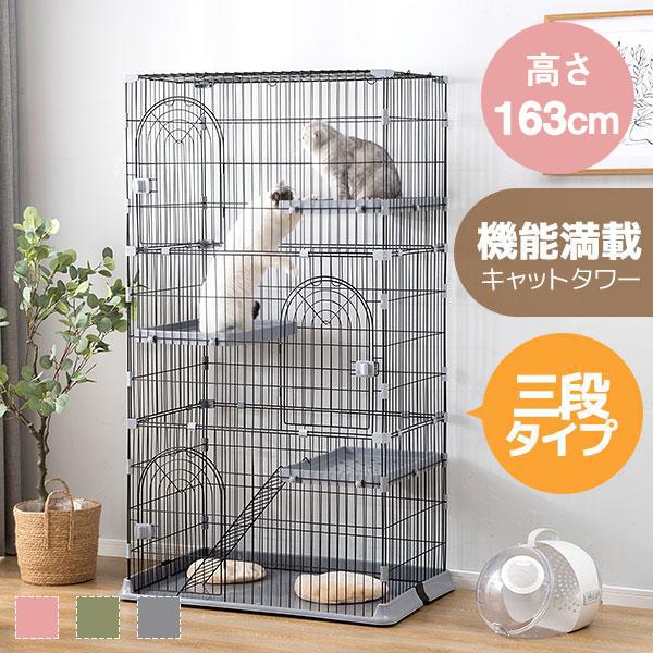 猫用ケージ 3段 キャットランドケージ ワイド 3段 ダークグレー PCLC903DGRY アイリスオーヤマ PCLC-903-DGRY