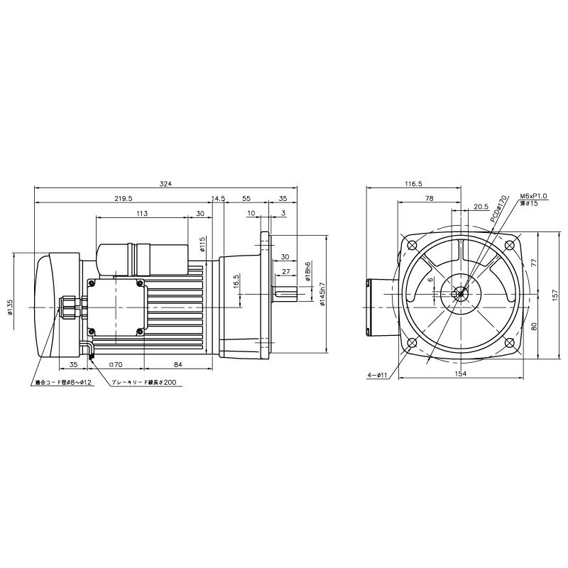 ニッセイ ギアモータ 直交軸 H2L28T200-MM02TWJNJ4 脚取付 0.2kW 三相400V ブレーキ手動解放装置付