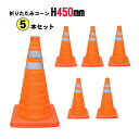 道路 工事 保安 コーン オレンジ 伸縮 持ち運び 折りたたみコーン H450mm 内照灯付 5本セット