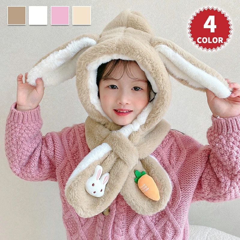 軽 柔らかい 防寒対策 肩掛け 暖かい 厚手 秋冬 ロング 男の子 女の子 キッズ 兎 人参 フード付き うさぎさん 子供 一体型 帽子