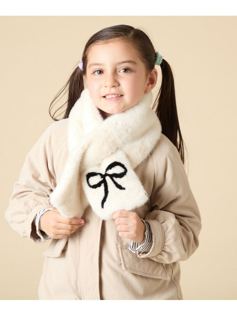 a.v.v [KIDS]リボンファーマフラー アー・ヴェ・ヴェ ファッション雑貨 マフラー・ストール・ネックウォーマー ホワイト