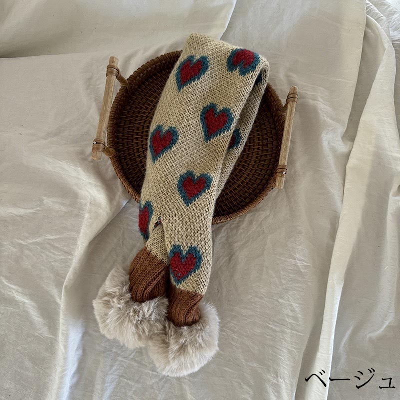 マフラー キッズ ハート柄 ニットマフラー 毛玉付き 防寒 ネックウォーマー 厚手 保温 ベビー 幼児 かわいい もこもこ