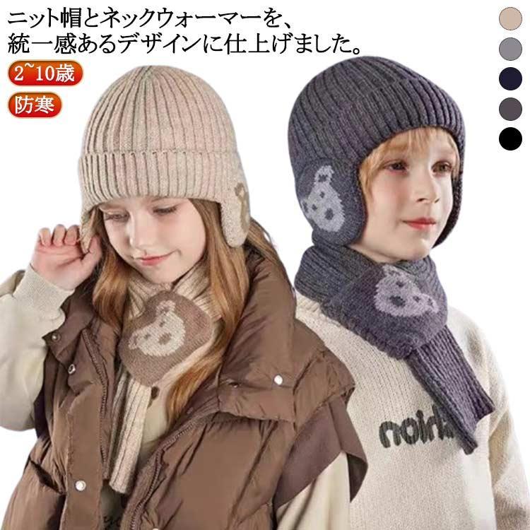 あたたかい キッズ マフラー スカーフ プロテクター ネック かわいい 男の子 女の子 冬物 3点セット モコモコ マフラー ニット
