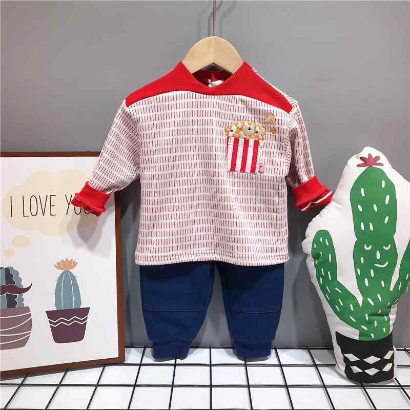 Tシャツ & パンツ 女児 春秋物 ストライプ 2点セット コットン 赤色 かわいい 普段着