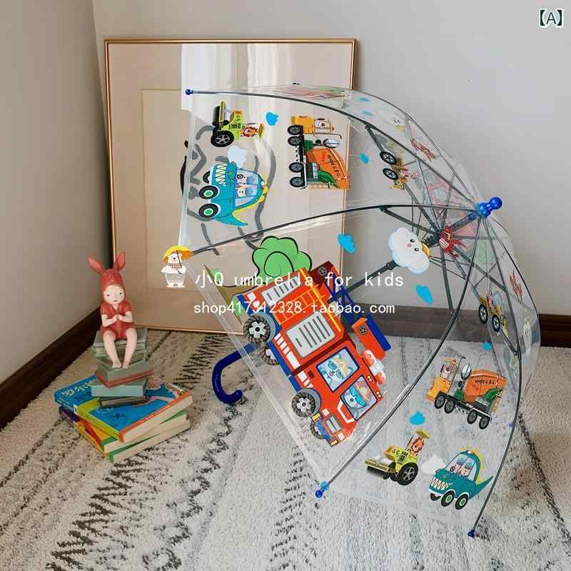 子供用 傘 キッズ 子供用 傘 男の子 車 消防 ショベルカー 子供 幼稚園 小学生 透明 大型 自動 ロング ハンドル