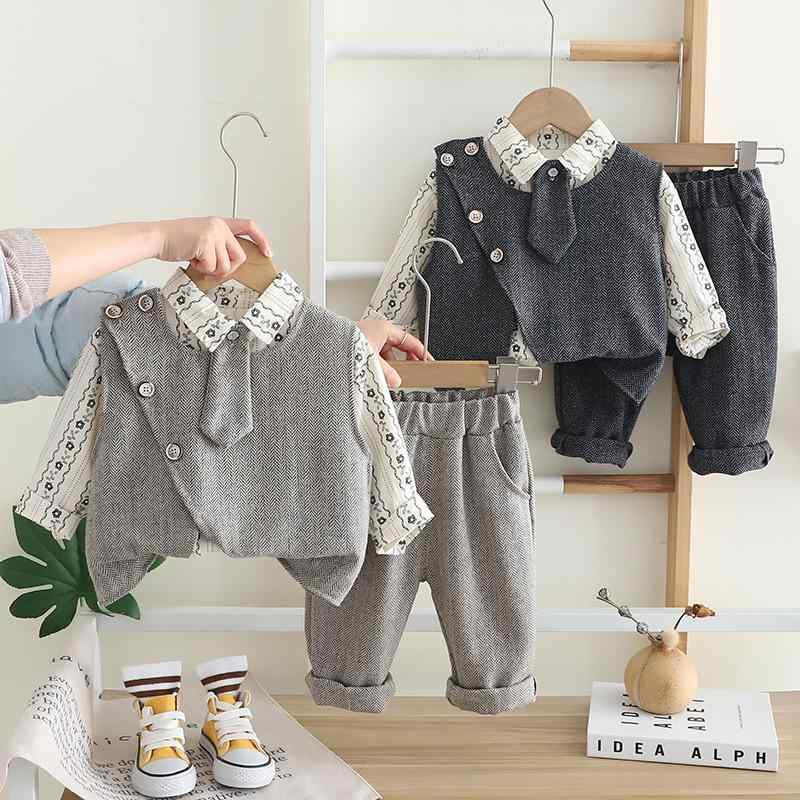 子供用フォーマルスーツ 春秋物 ベビー 子供服 おしゃれ ベスト シャツ 3点セット 綿 80 90 100 110 120cm グレー