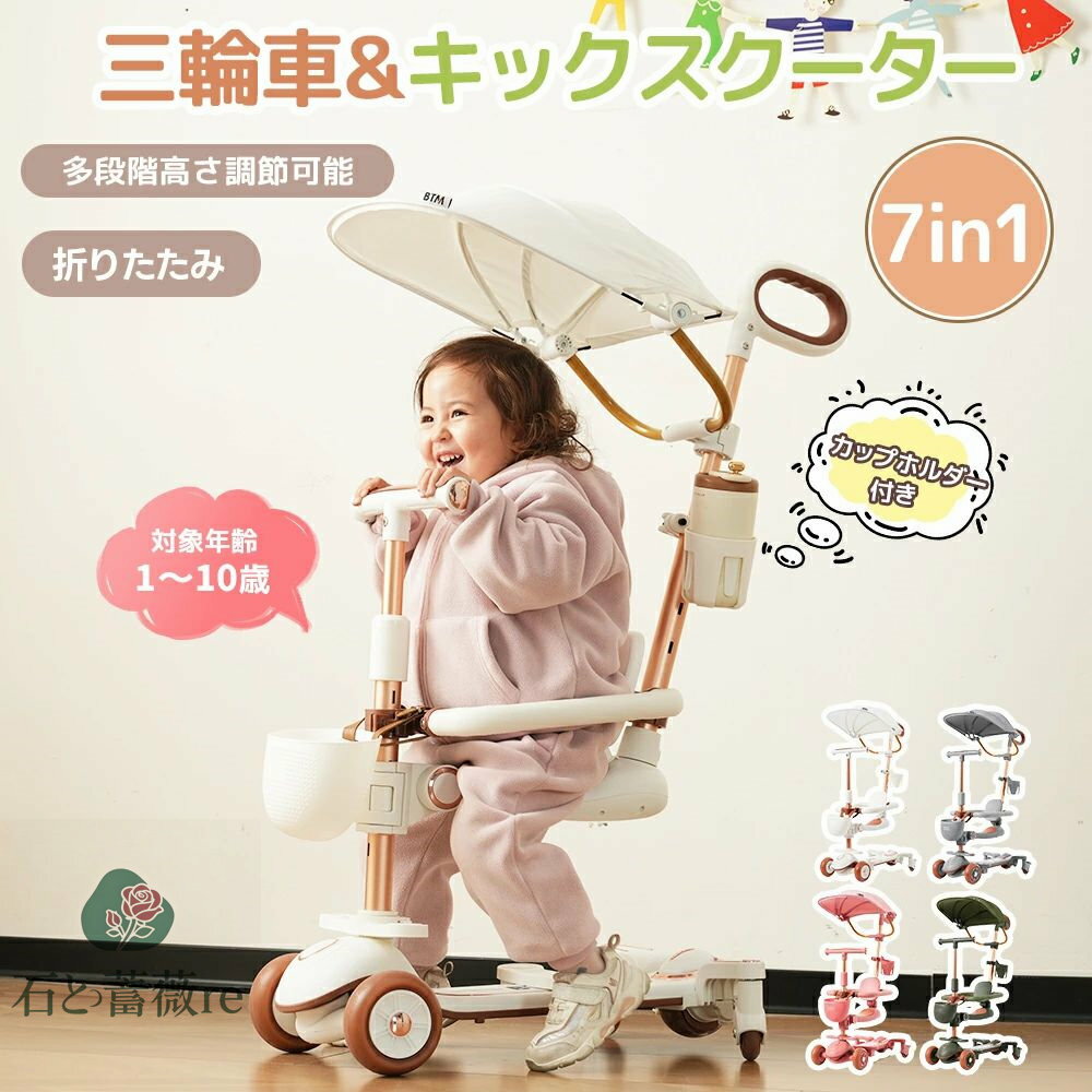 子供用三輪車 カバー ベビーカー 手押し棒付き バイク (ブルー)