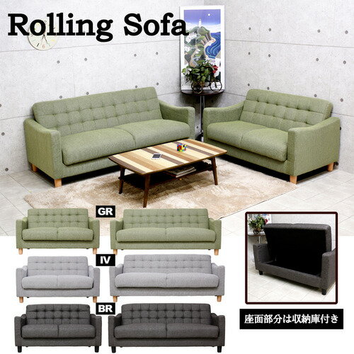 後藤家具物産 収納庫付の2人掛ソファー ポニーII/グリーン ファブリック ミニベッド 幅120cm SO-05-2P-GR