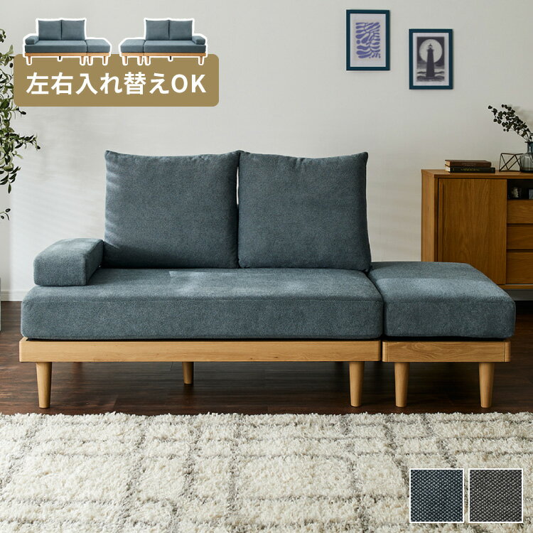 送料無料 カウチソファー フルカバーリング ブルー色 3色対応 左カウチ 脚3タイプ 鉄脚