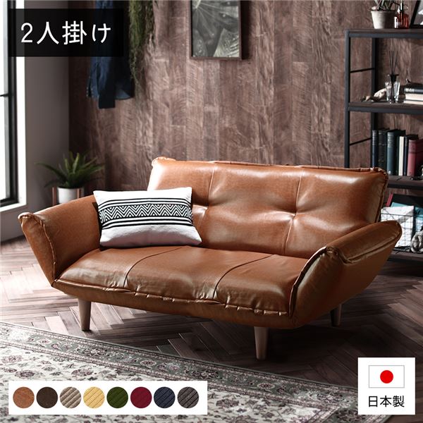 ハイバック ソファー 〔 2人掛け オットマン付き コーデュロイ生地 イエロー 〕 脚部:ブラウン リクライニング 日本製【代引不可】
