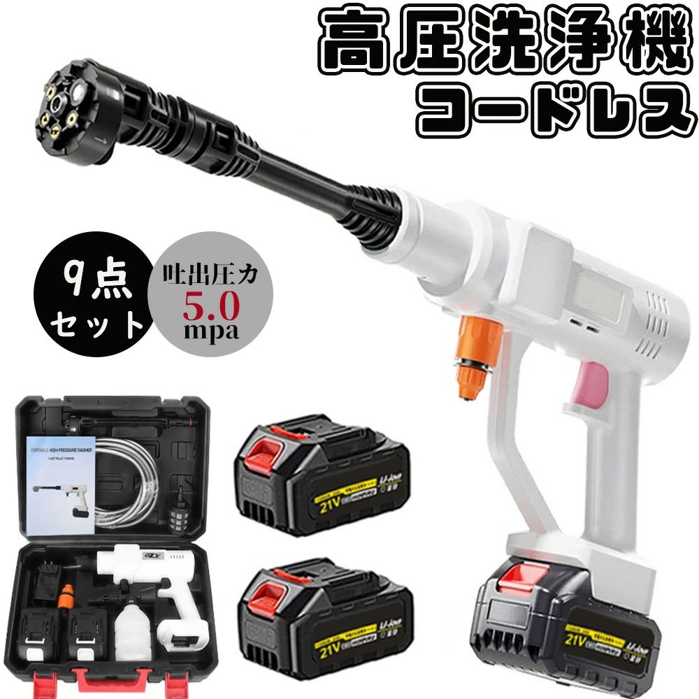 高圧洗浄機 コードレス 充電式 5Mpa 3速調整 家庭用 水圧洗浄機 軽量 多機能 5-in-1ノズル付き 洗車機