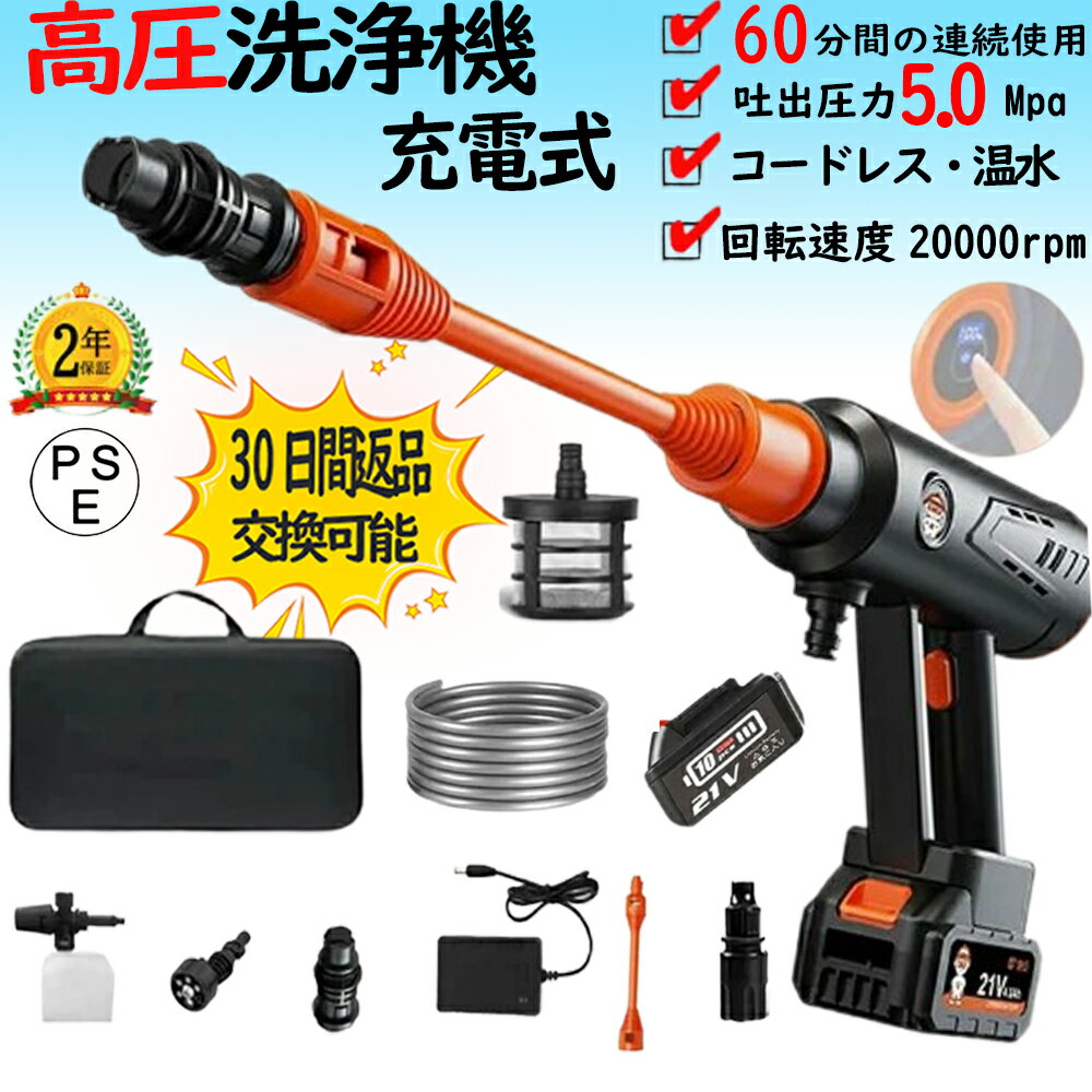 コードレス式 全身防水 移動便利 高圧洗浄機 タンク式 60bar 40℃温水対応 水道不要 コードレス