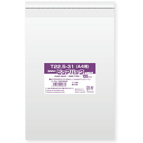 スワン OPP袋 ピュアパック テープ付 T 22.5-31(A4用) 100枚入り (1袋) 品番:006798326