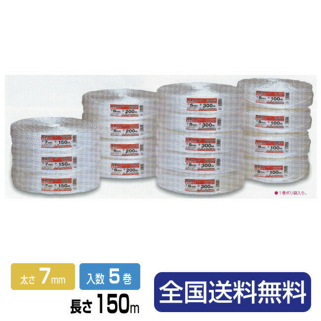 【ポイント10倍】荷造りロープ(PPロープ)FR-4515 溶着品 7mm×150m 白 5巻 【信越工業製】