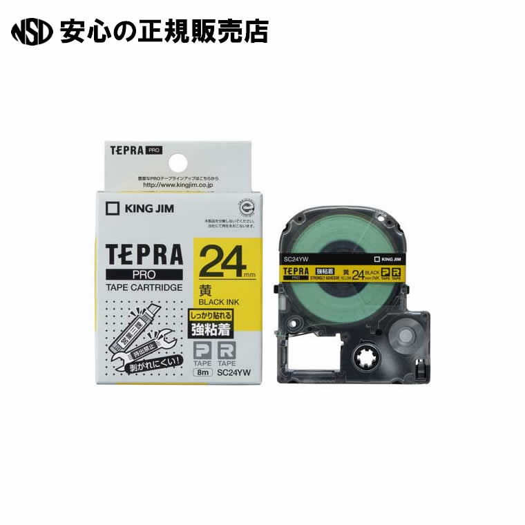 テプラPROテープ強粘着SC24YW 黄/黒字 5個 《 キングジム 》