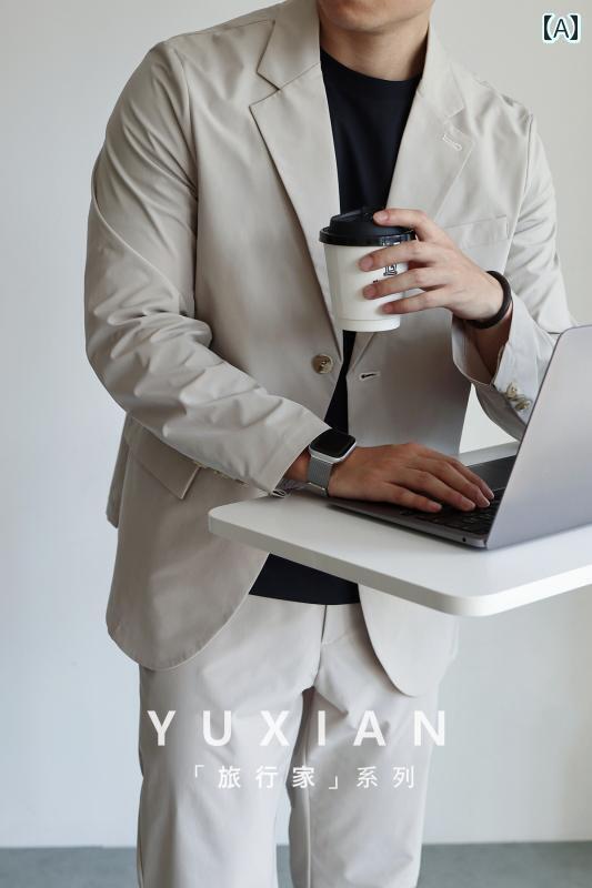 スーツ 男性用 スリムフィット 無地 テーラードジャケット ブレザー 春秋 通気 防風 カーキ グレー ブラック