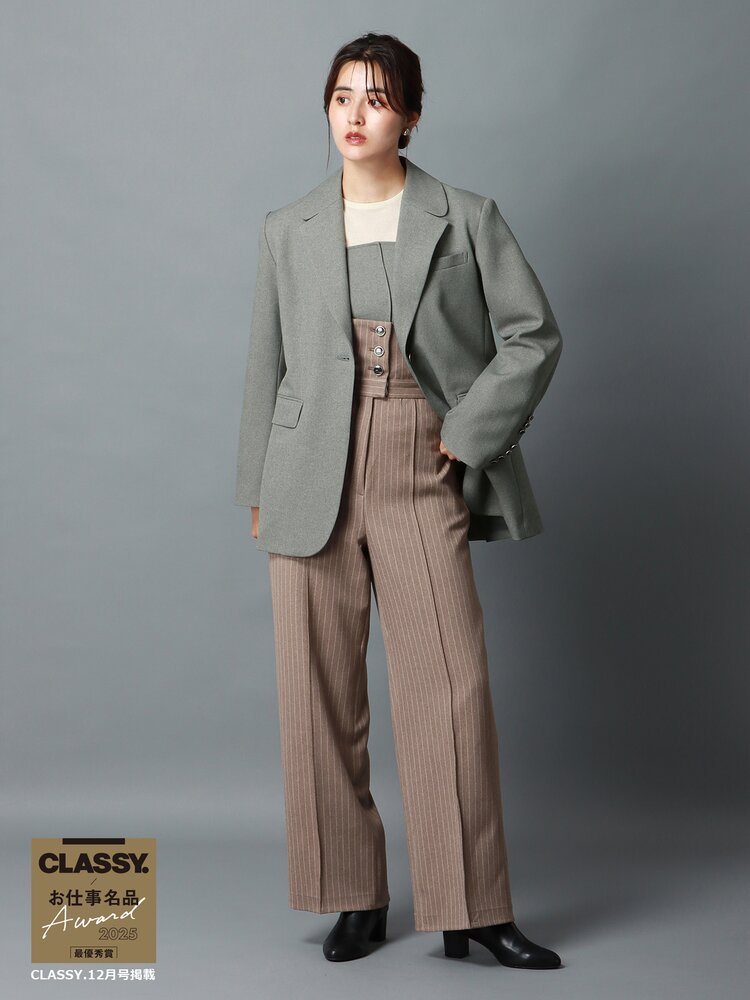 スーツ メンズ 男性用 ビジネス カジュアル 春秋 テーラードジャケット セットアップ ストライプ柄 ポリエステル 紳士服 ライトグレー
