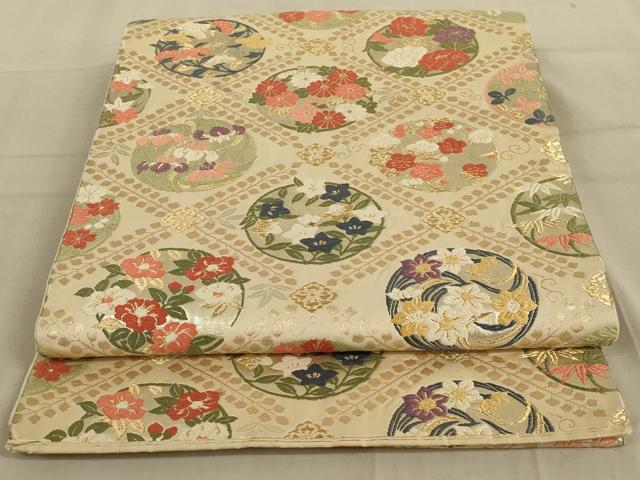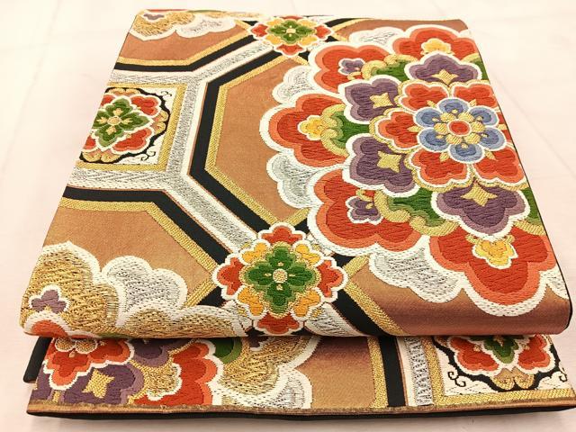平和屋着物◎六通柄袋帯 唐織 花菱文 金糸 正絹 逸品 AABB5169ou