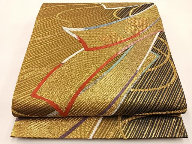 平和屋着物■太鼓柄袋帯 立波文様 金糸 逸品 n-te1500