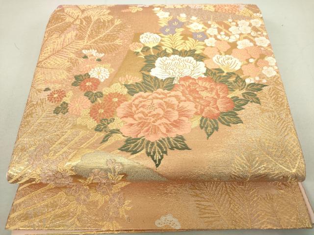 平和屋着物◎六通柄袋帯 扇草花文 金糸 秀美二重箔 正絹 逸品 DAAP3166ar