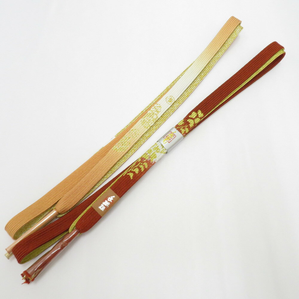 帯締め 2本まとめてセット 平組 組紐 絹100% 茶色系 金糸 正絹 和装小物 帯〆 レディース 女性 フォーマル 手組 新品