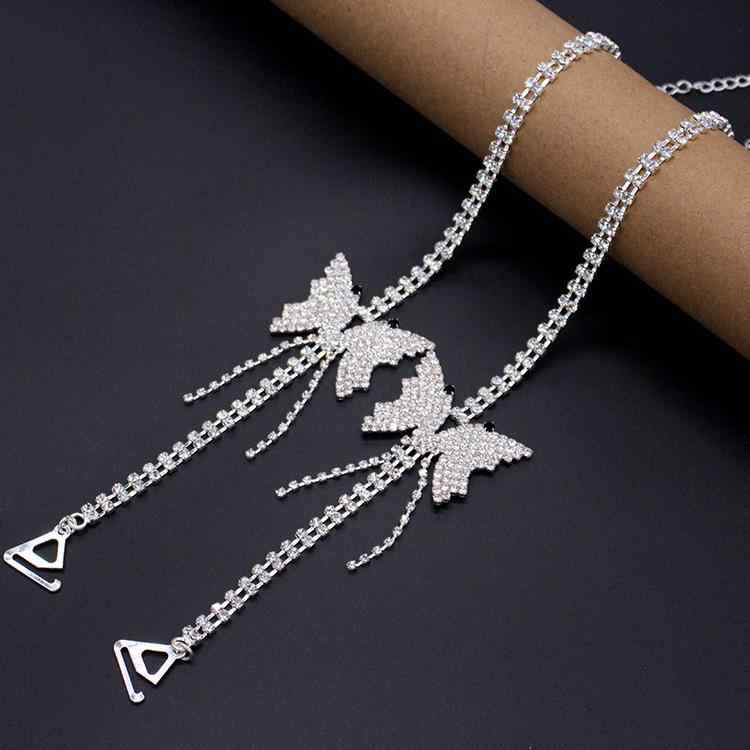 肩紐 レディース ラインストーン 蝶々 装飾 アクセサリー 銀 ナイロン 金属 調整 ビキニ ブラ かわいい