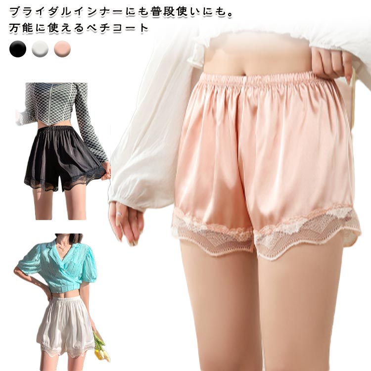 ペチパンツ レディース 透け防止 ショート丈 薄手 レース サテン ゆったり 裾丸まらない ルームウェア 普段使い 春夏