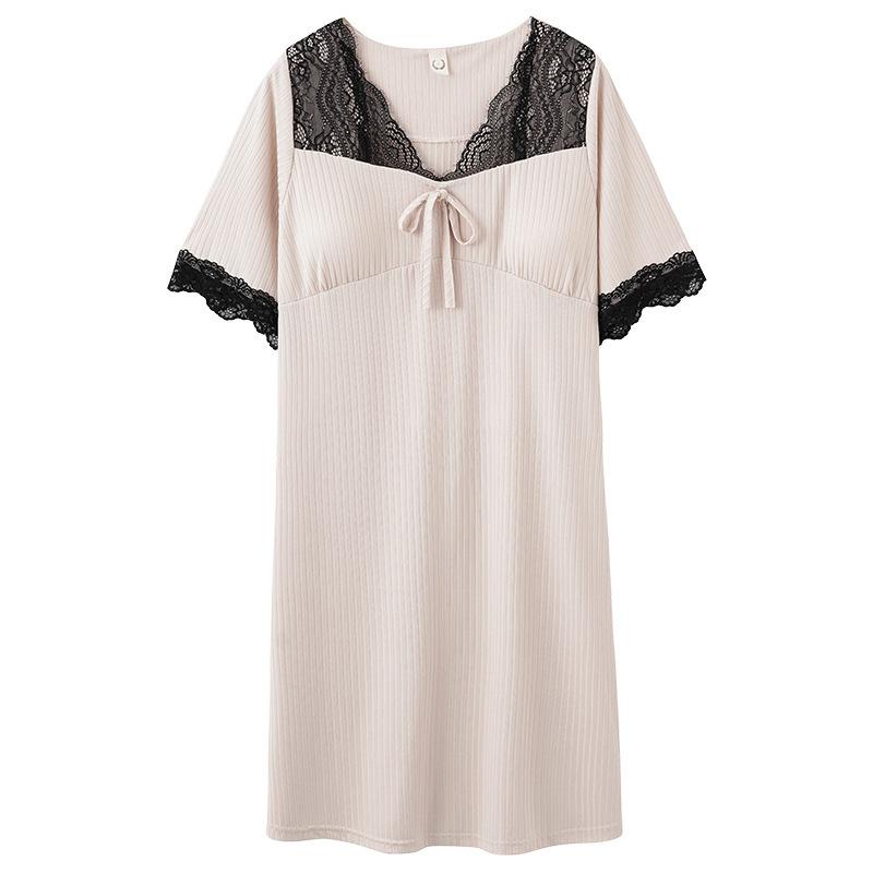 ワンピース レディース 春夏 Vネック M L XL XXL XXXL 接触冷感 再生繊維 部屋着 普段使い 杏色
